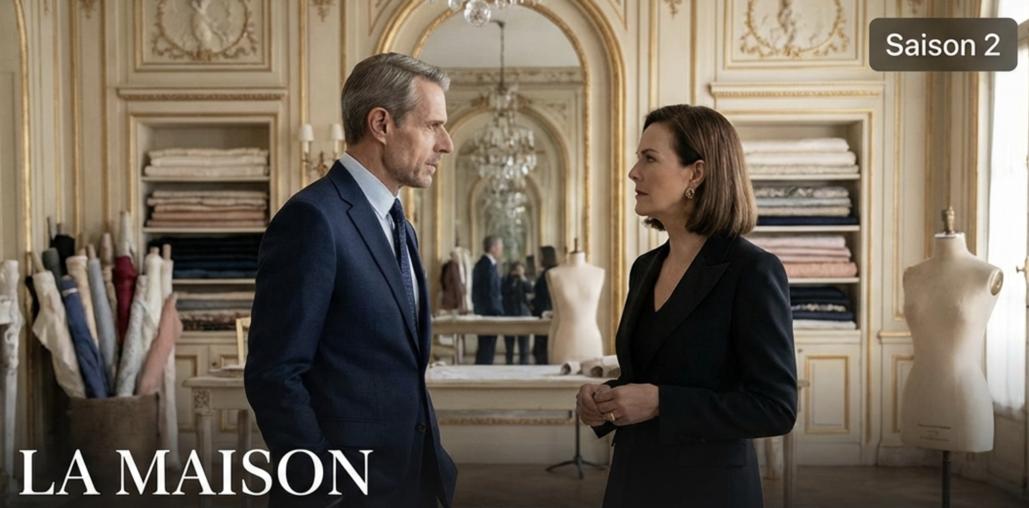 Les clans Ledu et Rovel s’affrontent pour le contrôle d’une maison de couture centenaire. Le tournage de cette nouvelle saison se déroule à Paris en février 2026, avec des scènes emblématiques durant la Fashion Week et en bord de Seine. Portée par un casting cinq étoiles et une esthétique soignée, “La Maison” s’impose comme la réponse française aux grandes fresques américaines sur le luxe et le pouvoir.
